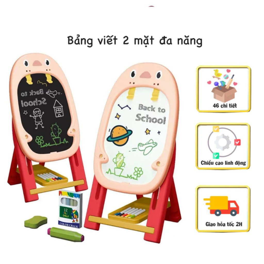 Bảng vẽ/ bảng viết từ tính 2 mặt, lắp đặt dễ dàng, thiết kế chắc chắn, an toàn, tặng kèm bút và phấn cho bé