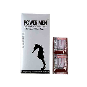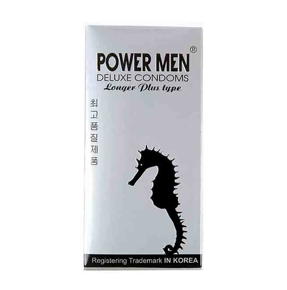 Bao cao su chống xuất tinh sớm cá ngựa bạc Power Men Longer Plus Type Là dòng bao cao su chống xuất tinh sớm với thiết kế có gai khắp thân bao giúp kích thích hưng phấn