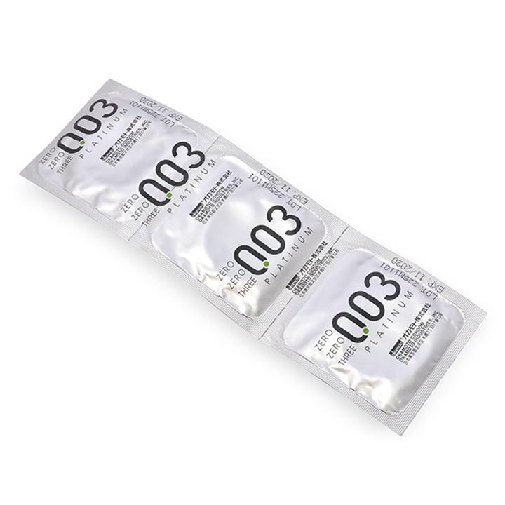 Bao cao su Okamoto 0.03 Platinum 52mm được làm từ mủ cao su thiên nhiên cao cấp, đáp ứng các yêu cầu và điều kiện sản xuất nghiêm ngặt, đảm bảo an toàn tối đa cho người sử dụng.