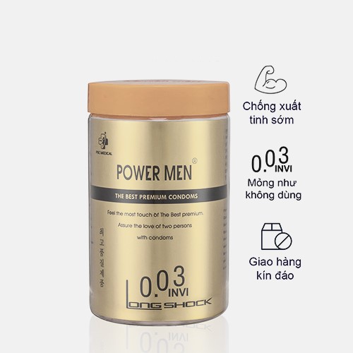 Bao cao su Power men 0.03 mn siêu mỏng kéo dài chống xuất tinh sớm