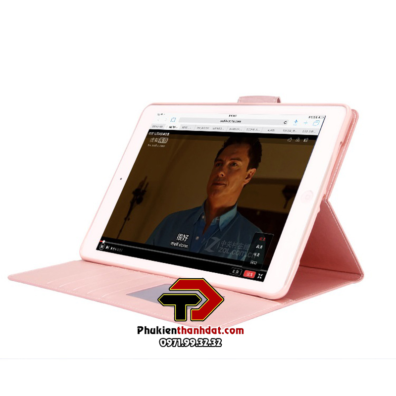 Đặc điểm nổi bật nữa của sản phẩm là mặt trước bao da có quai gài nam châm hút vào màn hình rất gọn, không bị bung ra lỏng lẻo gây trầy xước màn hình khi để chung với các vật dụng khác.