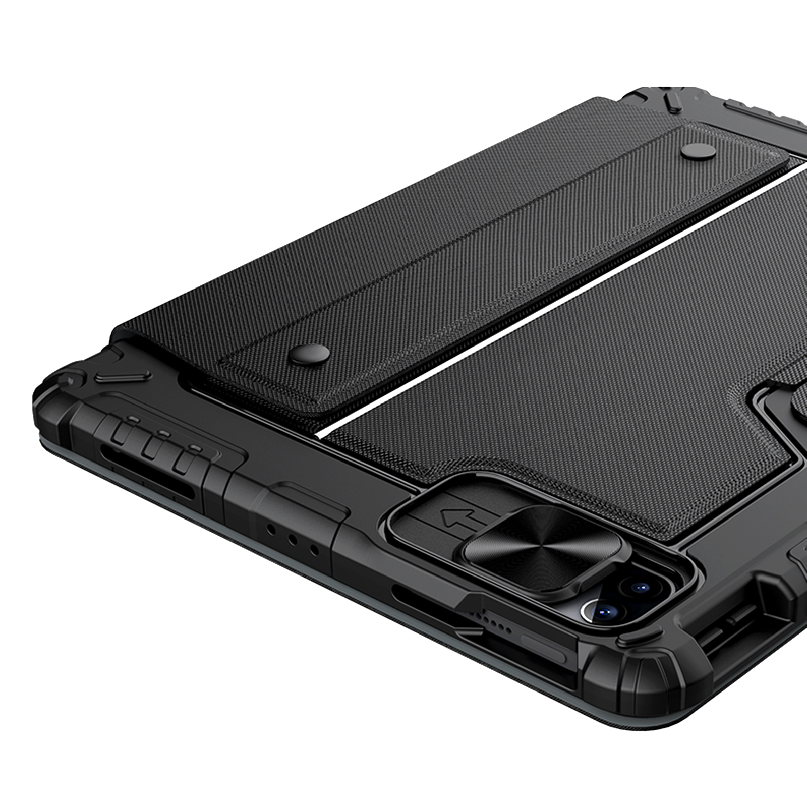 Mua tại TiktokBao da kèm bàn phím NILLKIN Bumper Combo Bumper Combo Keyboard Case là hộp đựng bàn phím đa chức năng dành riêng cho iPad Pro, có giá đỡ có thể điều chỉnh, bàn phím có thể tháo rời và bàn di chuột giúp thuận tiện khi nhập, xem, đọc và phác thảo. Đồng thời cho phép bạn tận hưởng trải nghiệm hoạt động linh hoạt. Vỏ chống rơi cấp quân sự được sử dụng bao bọc chặt chẽ xung quanh các cạnh của iPad, cung cấp khả năng bảo vệ toàn bộ xung quanh. Thiết kế nắp trượt máy ảnh đã được cấp bằng sáng chế giúp bảo vệ máy ảnh của iPad khỏi mài mòn và trầy xước một cách hiệu quả. Chất liệu vải PU ngắn gọn và tinh tế hòa quyện với tính thẩm mỹ của iPad, một sự tích hợp hoàn hảo của nghệ thuật và công nghệ.