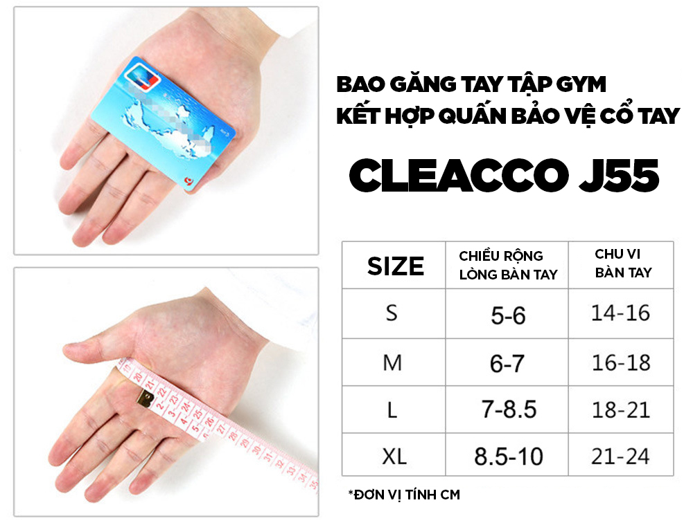 Bao găng tay tập gym kết hợp quấn bảo vệ cổ tay Cleacco J55 - Hàng chính hãng Găng tay tập gym: Găng tay tập Gym có tên khác là bao tay tập Gym,