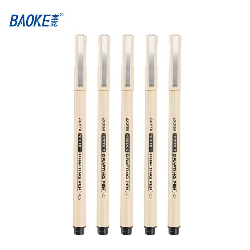 Thường được dùng trong vẽ, thiết kế, kiến trúc Vỉ 5 Cây Viết Mỹ Thuật Baoke (0.1/0.5/0.7/0.3/0.05) gồm 5 size ngòi: 0.1/0.5/0.7/0.3/0.05mm.