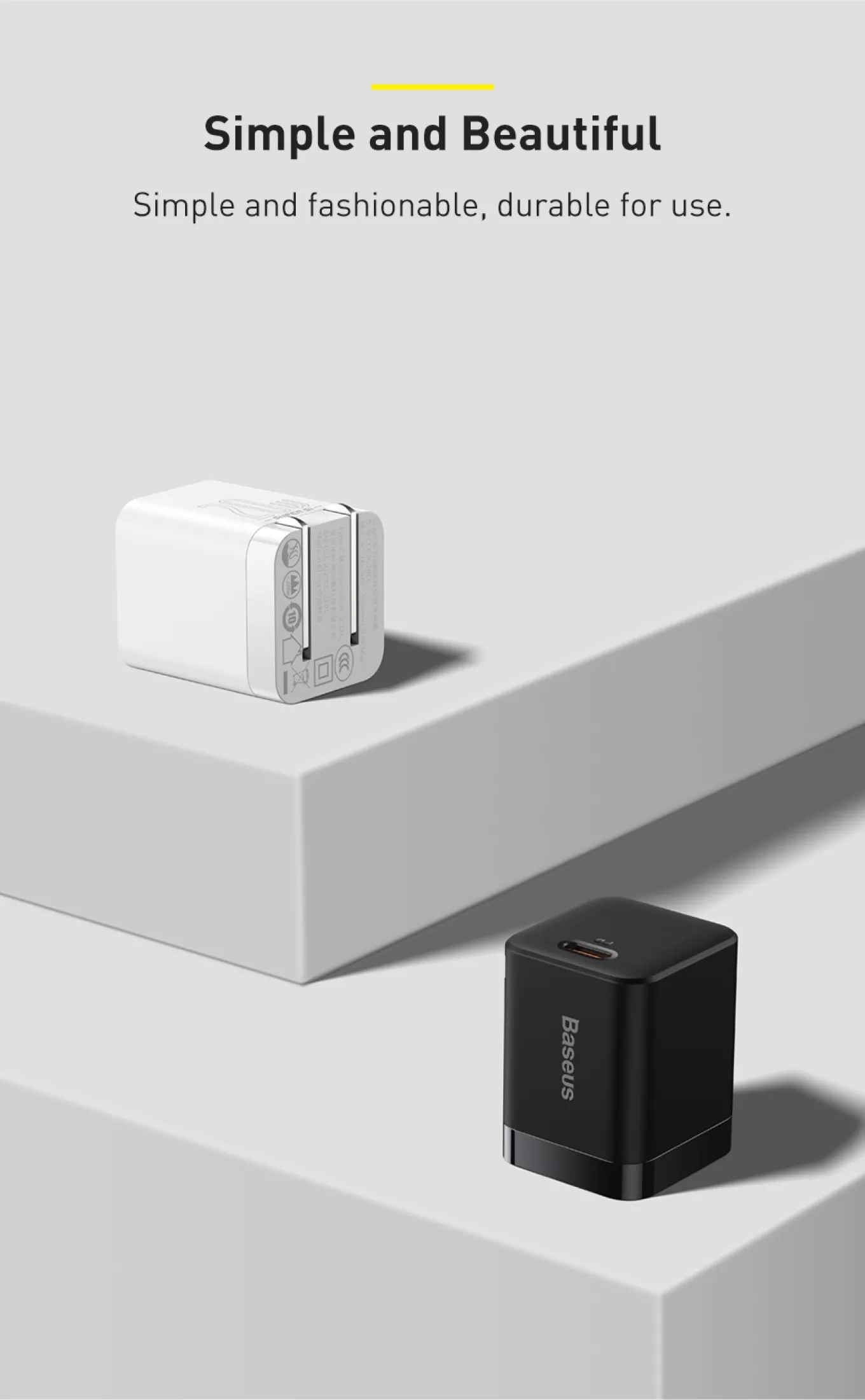 Baseus Super Si Pro Quick Charger 1 Type C 20W Cơ chế gập chân sạc nhanh gọn và chắc chắn. Chất liệu cứng cáp và bền bỉ. Sạc cực nhanh.