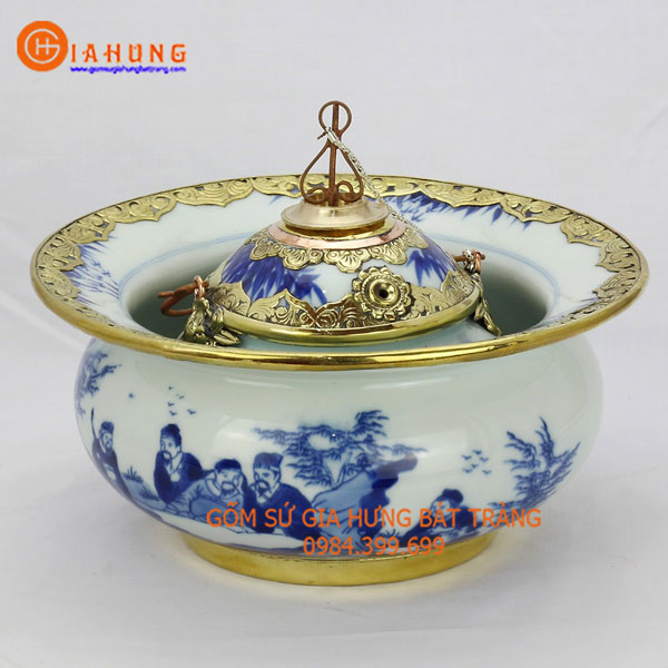 ĐIẾU BÁT men lam bọc đồng Bát Tràng.