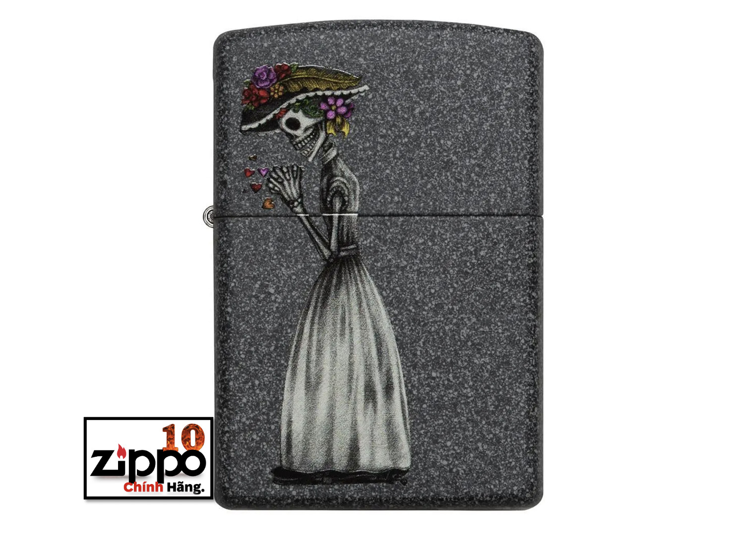 Cái chết không thể ngăn được tình yêu đích thực. Bộ hai chiếc bật lửa chống gió Iron Stone này ghi lại câu chuyện tình yêu lãng mạn. Được đóng gói trong một hộp đựng dạng quà tặng. Để tối ưu hiệu suất, hãy dùng nhiên liệu bật lửa của Zippo.