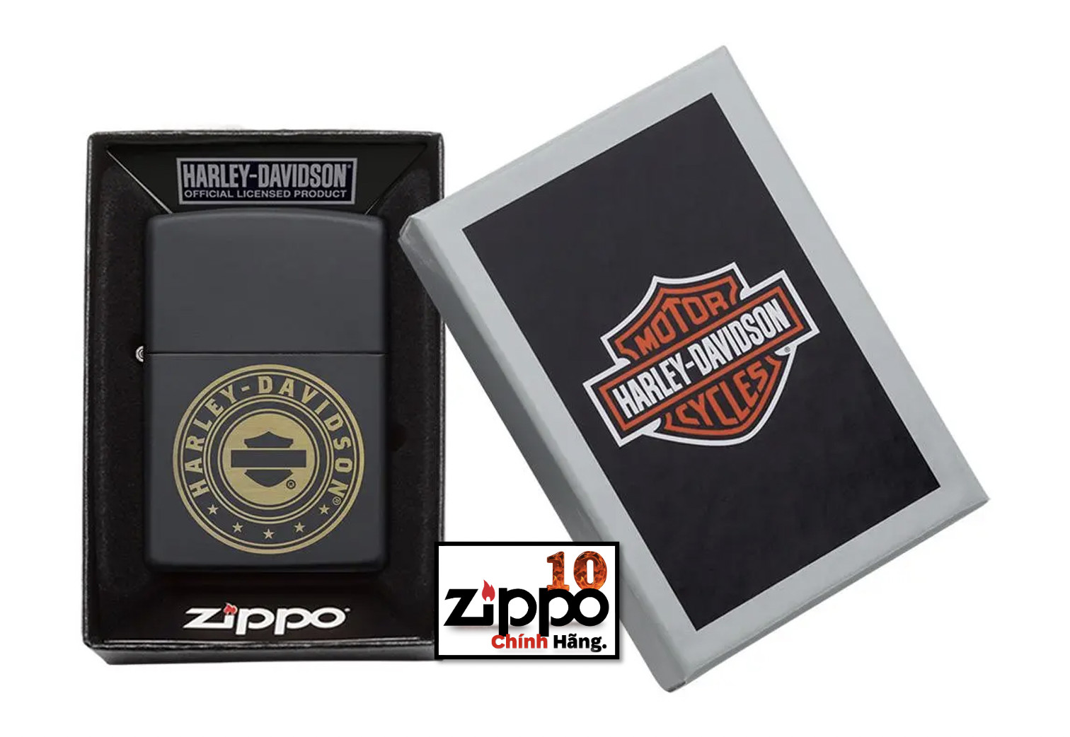 Hãy tách mình ra khỏi đám đông với thiết kế lấy cảm hứng từ Harley-Davidson này. Chiếc bật lửa màu đen mờ này nổi bật với biểu tượng hình khiên và thanh Harley-Davidson được khắc bằng laser, thể hiện thiết kế bằng đồng, tạo nên sự khác biệt chắc chắn nhưng tinh tế. Được đóng gói trong một hộp đựng dạng quà tặng. Để tối ưu hiệu suất, hãy dùng nhiên liệu bật lửa của Zippo.