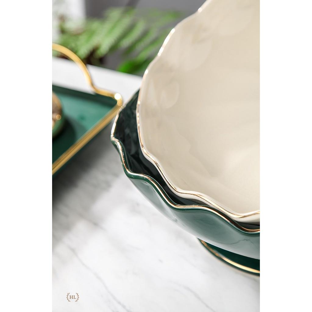 ✨BÁT SỨ CÓ CHÂN CAO CẤP | ĐĨA SỨ | RỔ SỨ ĐỰNG HOA QUẢ TRÁI CÂY CÓ CHÂN PHONG CÁCH BẮC ÂU KẺ VÀNG KIM CAO CẤP