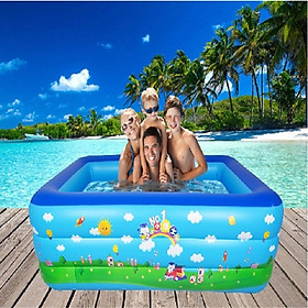 Hồ bơi thiết kế lớn có thể cho 3 bé cùng bơi Chất liệu pvc an toàn Đáy hồ bơm hơi ngồi êm ái Hồ cao 3 tầng