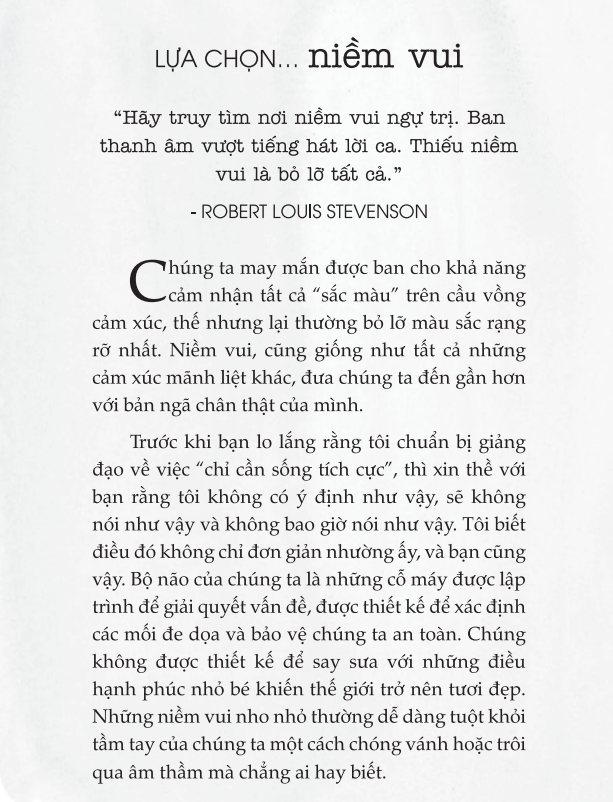- LỰA CHỌN những trạng thái cảm xúc và giá trị giúp chúng ta tận hưởng cuộc sống trọn vẹn dựa trên những gì thực sự quan trọng với tâm hồn.