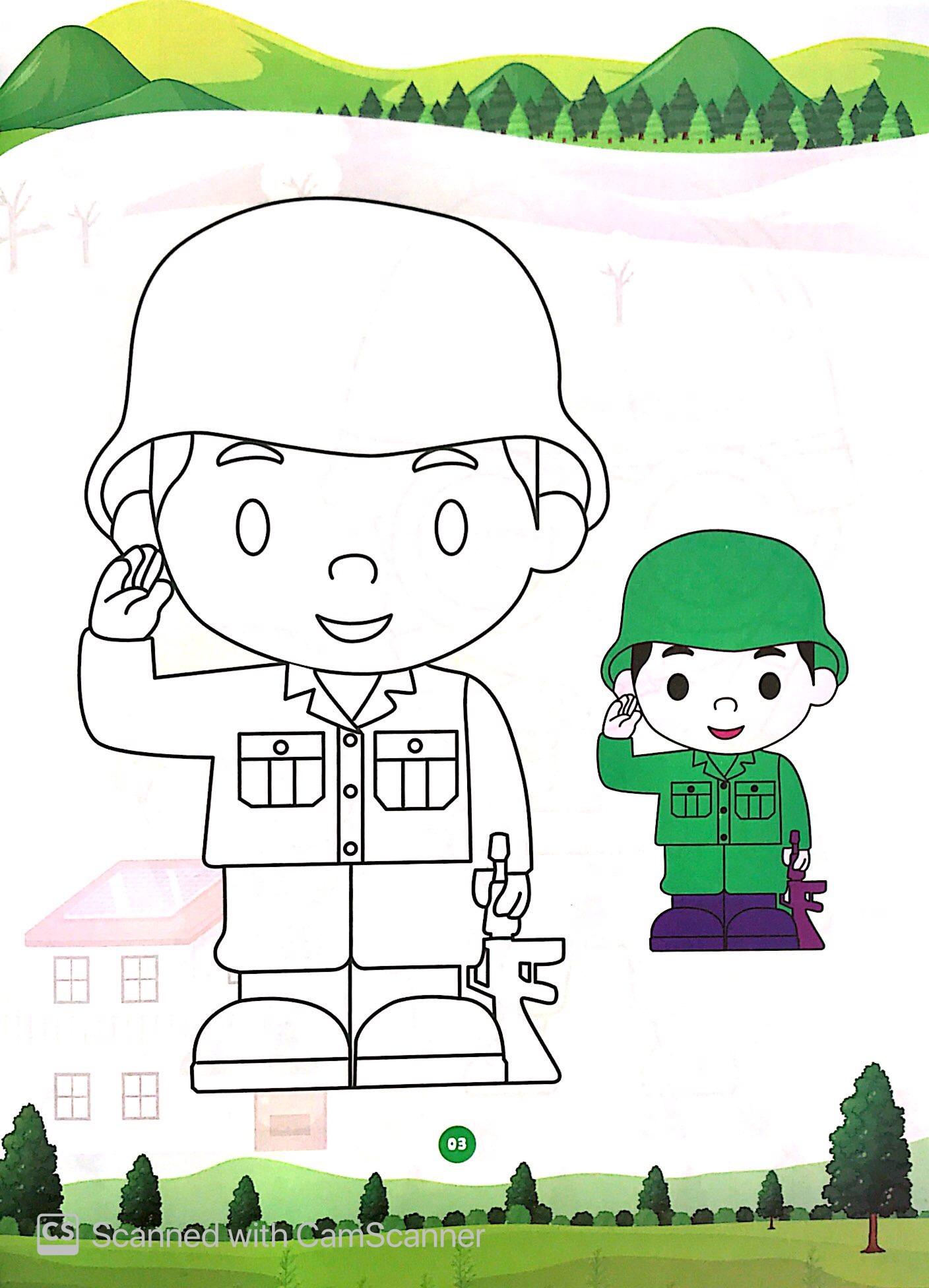 Xem bé vẽ tô màu chú bộ đội