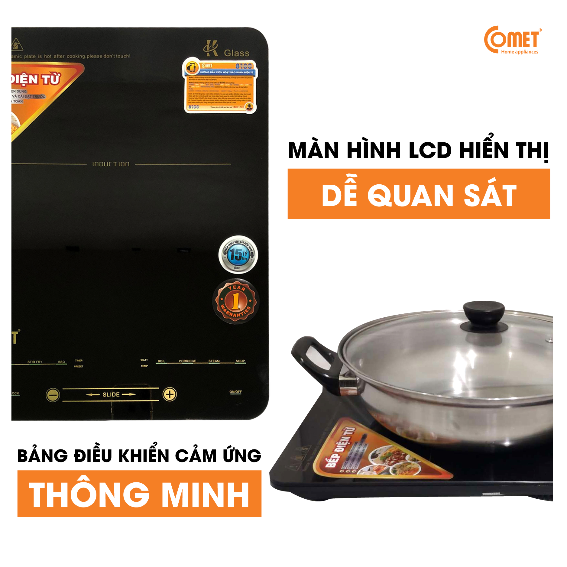 • Bếp điện từ Comet với bảng điều khiển cảm ứng cùng với màn hình LCD hiển thị rất dễ quan sát và thao tác. Khi nhiệt độ mặt bếp quá nóng cũng như các thông số điện quá mức cho phép, bếp sẽ tự động ngắt để đảm bảo an toàn cho người sử dụng.
