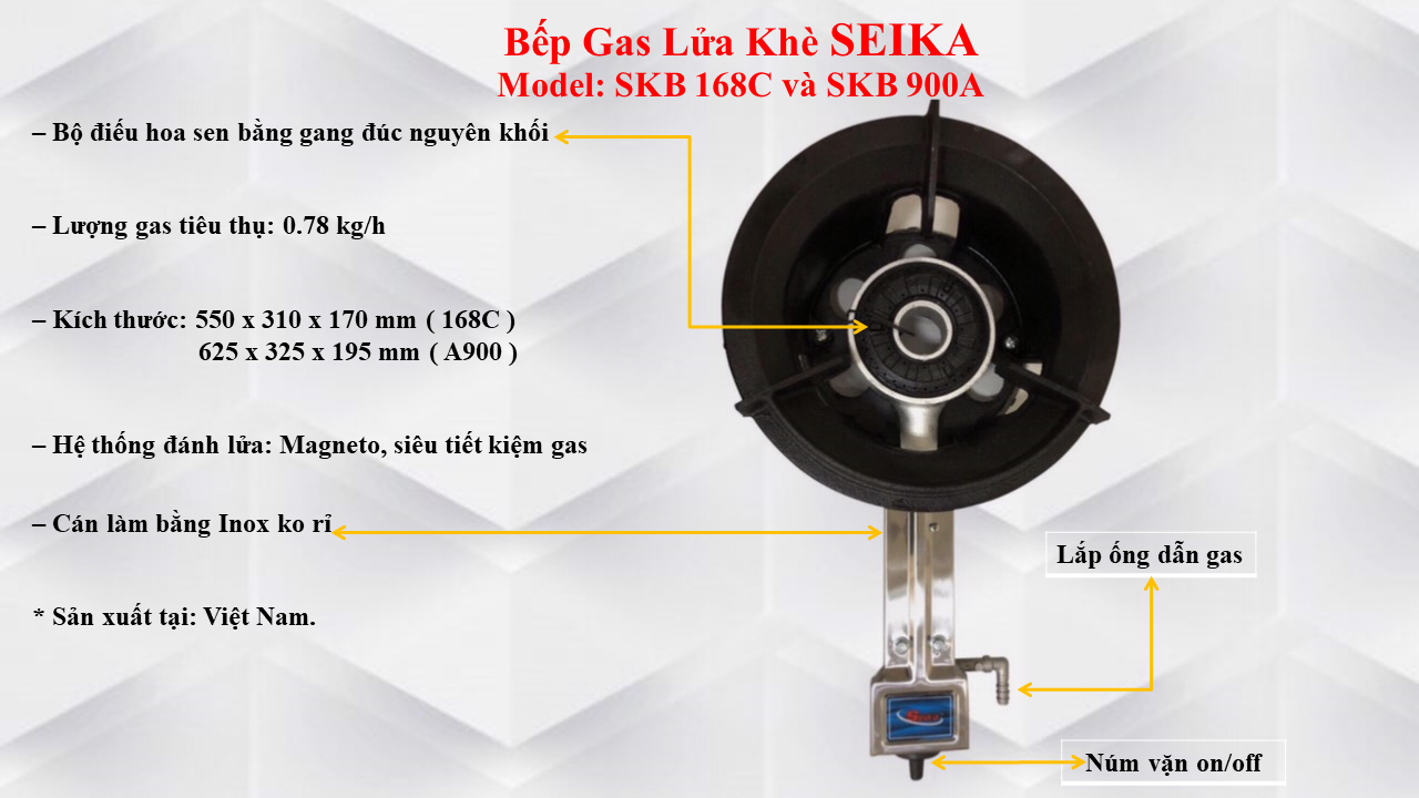 - Bếp Gas Lửa Khè Seika SKB900A - Hàng Chính Hãng cho hiệu năng cao cùng lửa khè to và mạnh, giúp việc chế biến các món Á, món xào với lửa lớn, món chiên,