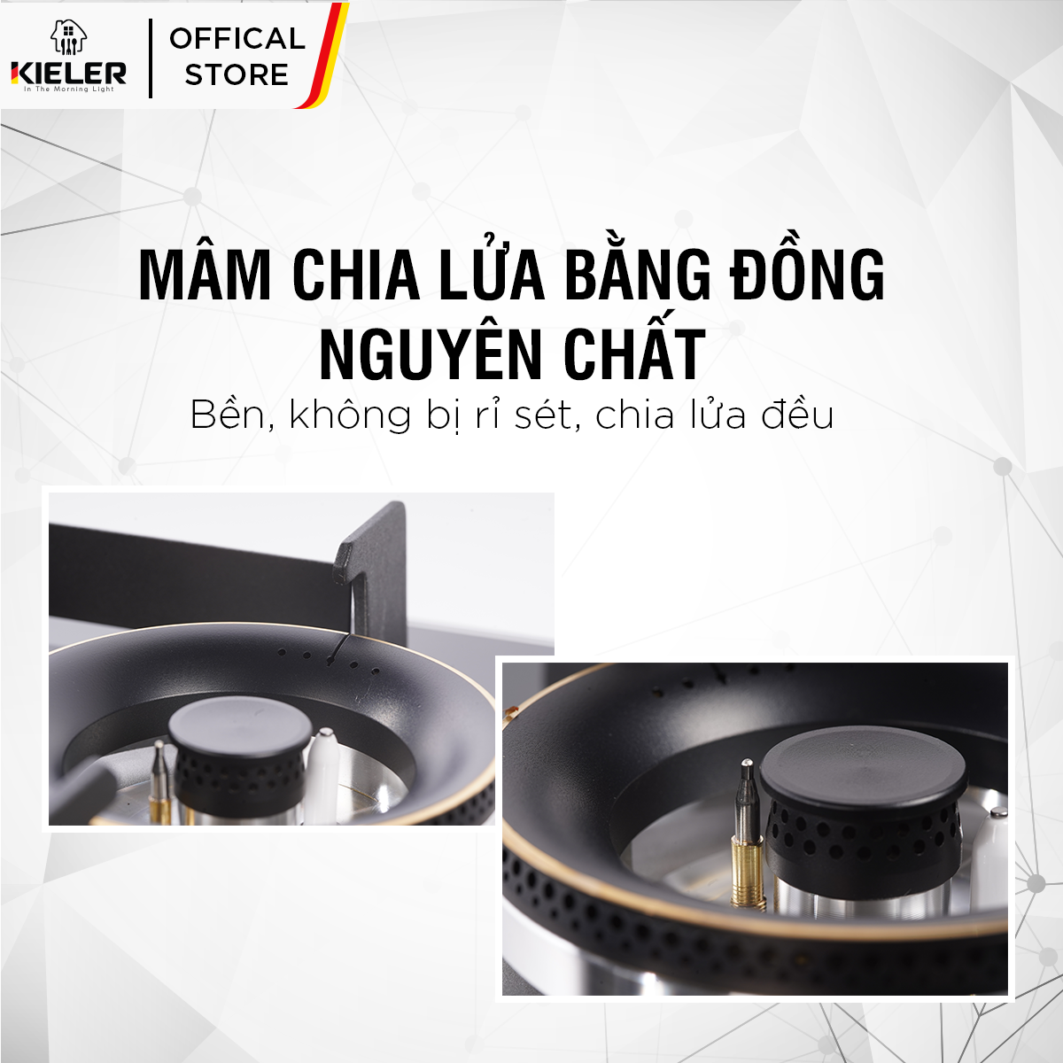 * Mặt kiếng cao cấp chịu lực, chịu nhiệt, thiết kế hoa văn sang trọng; - Thân bếp bằng inox, cao 100 mm; - Kiềng thép sơn tĩnh điện, có chắn gió; - Điếu loe