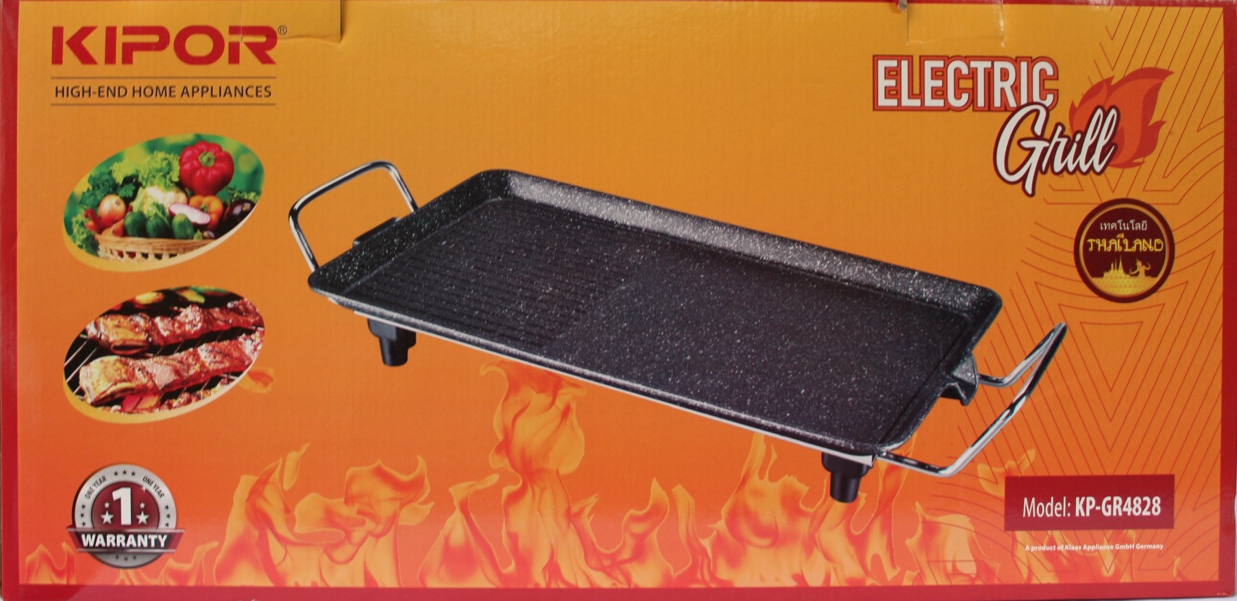 Bếp Nướng Điện Lớn (48x28cm) Kipor KP-GR4828 - Chính Hãng ĐẶC ĐIỂM NỔI BẬT - Bề mặt phủ chống dính đá hoa cương Whitford – USA siêu bền, kháng khuẩn - Tay cầm cách nhiệt