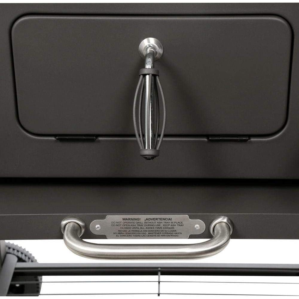 Than được chứa ở khoang riêng, có thể tăng giảm độ cao của khay than rất thông minh, giúp đồ nướng được kiểm soát nhiệt độ tránh bị cháy. Bếp nướng có nắp đậy và đồng hồ báo nhiệt độ trong lò rất tiện lợi.