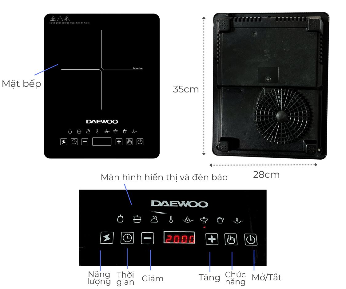 Điện áp 220-240V / 50Hz Tổng công suất 2000W Kích thước: 370X290 MM