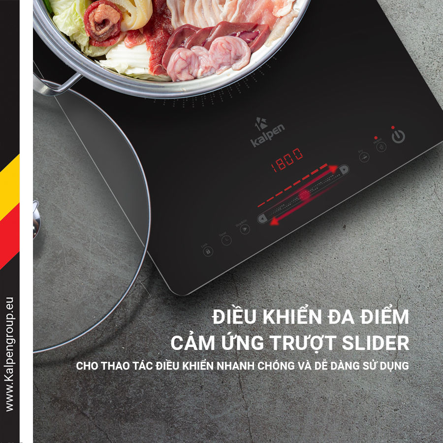 - Thiết kế hiện đại theo tiêu chuẩn Đức với công nghệ điều khiển đa điểm cảm ứng trượt Slider cho thao tác điều khiển nhanh chóng và dễ dàng sử dụng