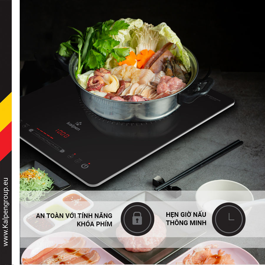 - Chức năng hẹn giờ nấu thông minh. Đa số các bếp lẩu trên thị trường hiện nay thì rất hiếm có chức năng hẹn giờ nấu. Tính năng hẹn giờ tắt bếp giúp người dùng cài đặt khoảng thời gian nấu, sau thời gian đó bếp sẽ tự động tắt. Ví dụ: Người dùng hẹn giờ nấu là 30 phút thì sau 30 phút bếp sẽ tự động tắt. Tính năng này rất hữu ích trong việc nấu các món ăn cần nhiều thời gian như: nấu cháo, ninh, hầm,
