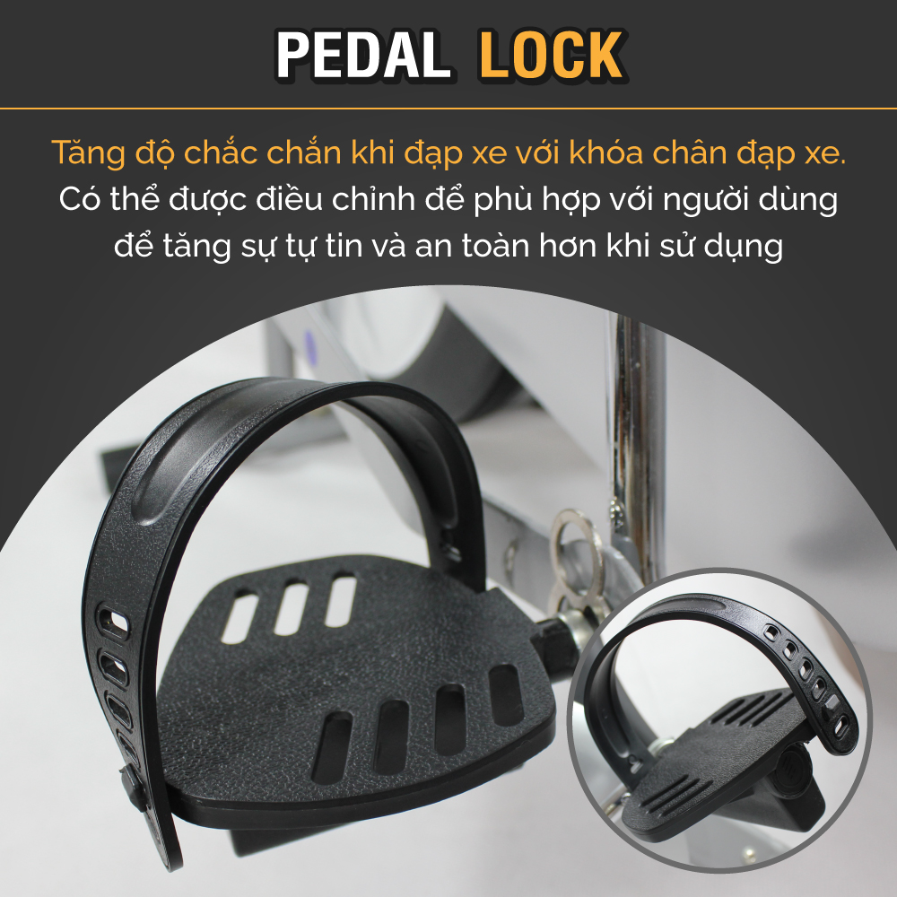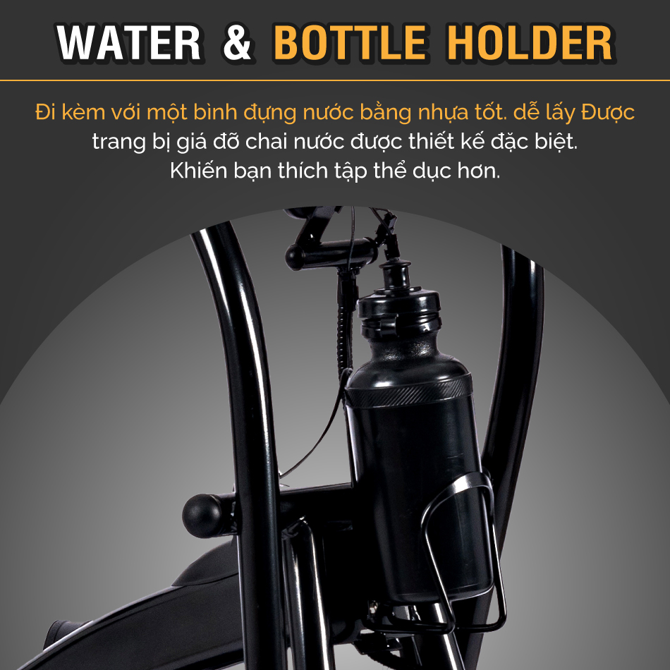 Trọng lượng tối đa người sử dụng: 125kg Cốt thanh tay cầm và yên xe bằng crom Màn hình LED hiển thị trực quan, dễ dàng quan sát Trang bị giá đựng chai nước và