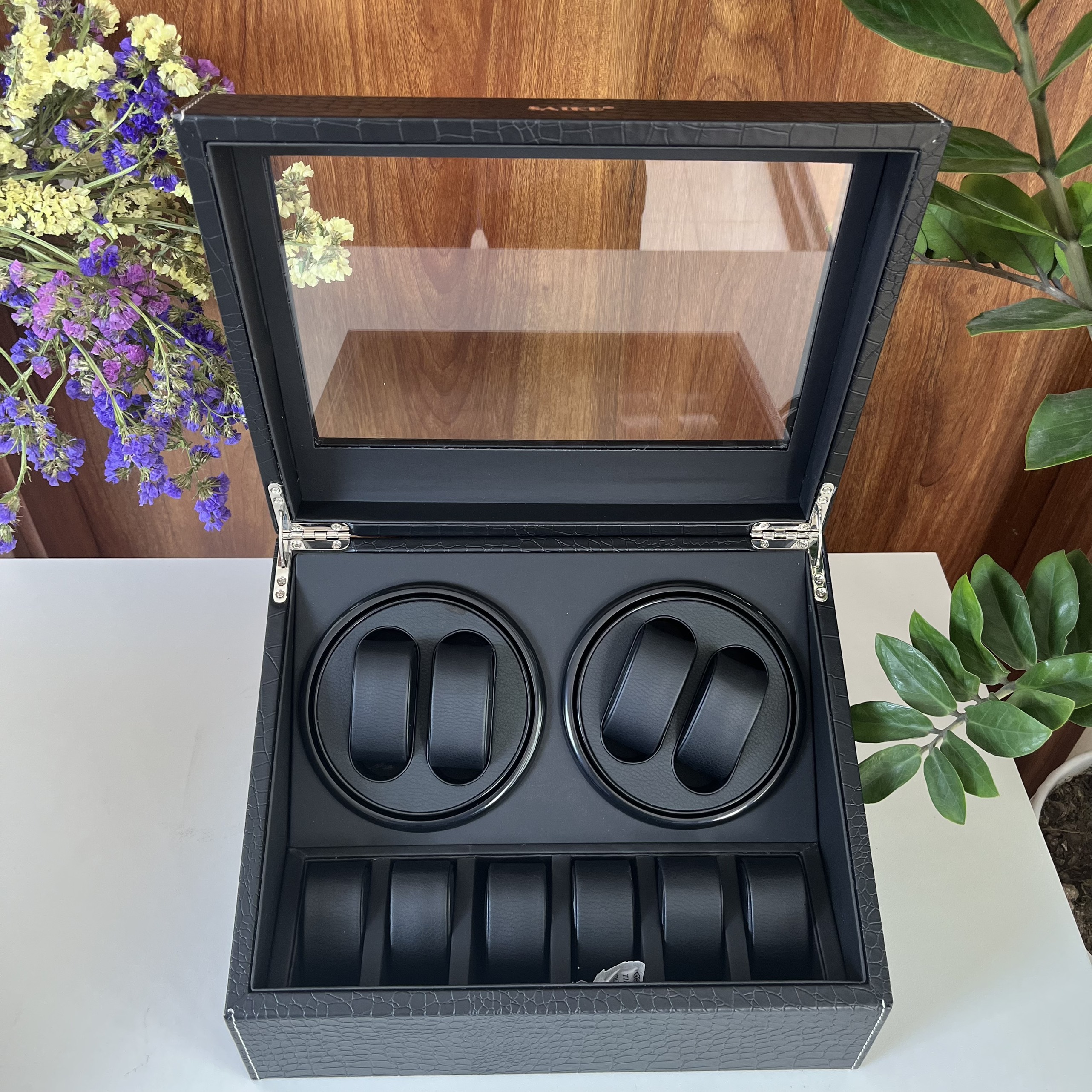 ✨[BH 2 Năm Động Cơ] Hộp Đựng Đồng Hồ Cơ 4 Xoay Và 6 Trưng Bày Da