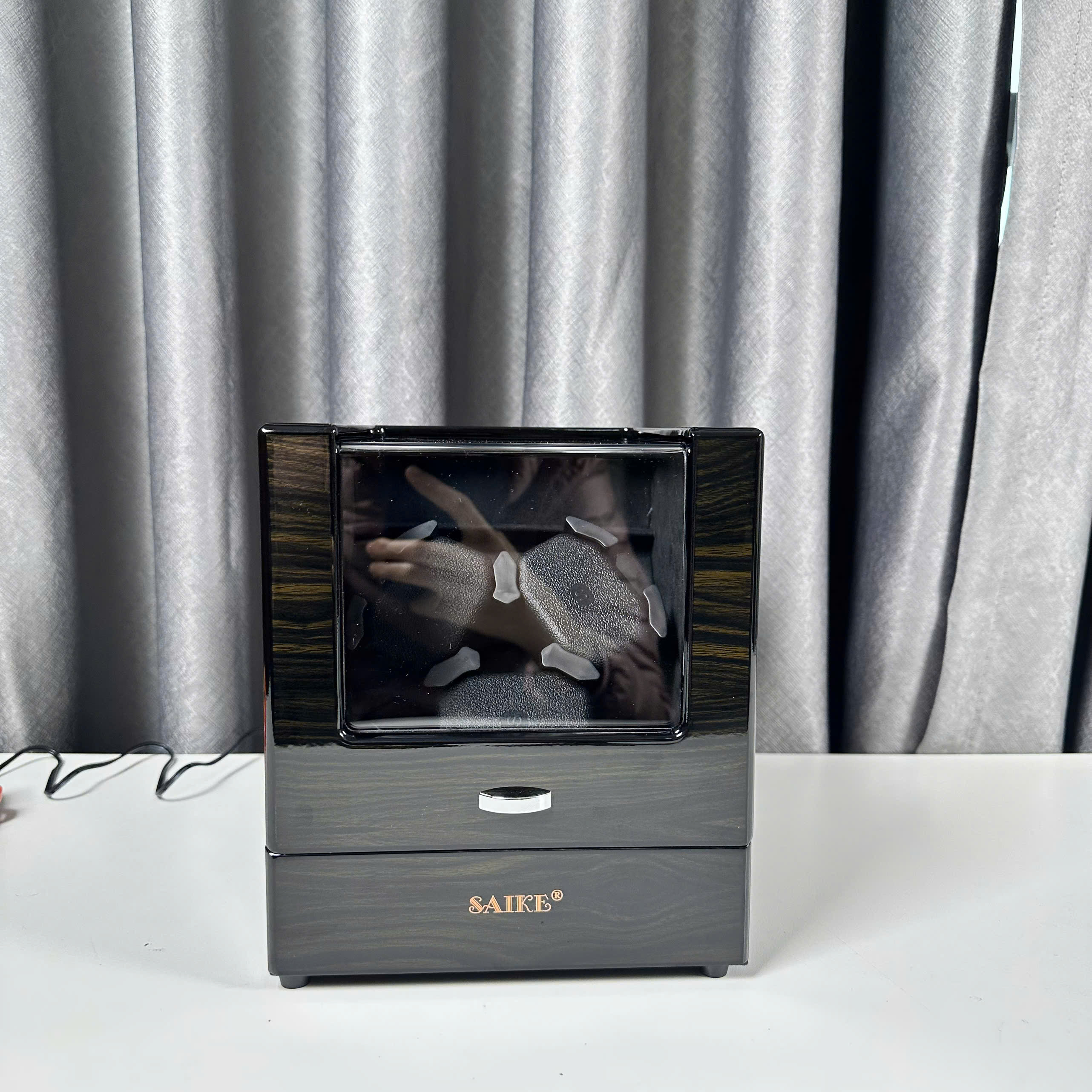 Thông tin sản phẩm: Hộp Xoay Đồng Hồ Cơ Mẫu 3 Xoay 3 Tĩnh SAIKE Vỏ Gỗ Sơn Vân Gỗ Mun Có Đèn - Thương hiệu: SAIKE - Chất liệu: thân phôi là gỗ MDF,