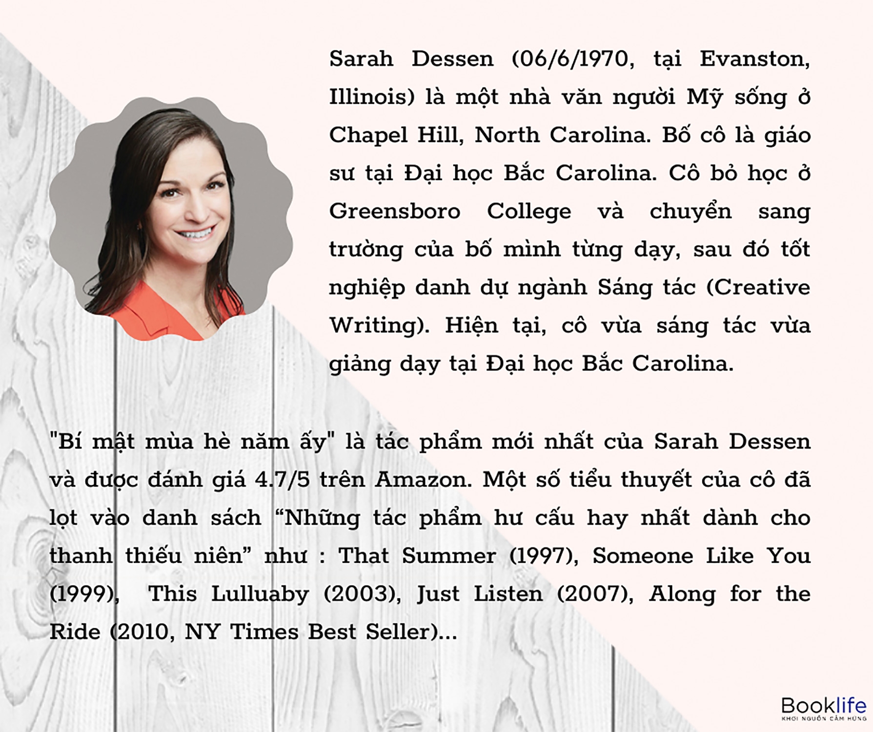 Sarah Dessen (06/6/1970, tại Evanston, Illinois) là một nhà văn người Mỹ sống ở Chapel Hill, North Carolina. Bố cô là giáo sư tại Đại học Bắc Carolina. Cô bỏ học ở Greensboro College và chuyển sang trường của bố mình từng dạy, sau đó tốt nghiệp danh dự ngành Sáng tác (Creative Writing). Hiện tại, cô vừa sáng tác vừa giảng dạy tại Đại học Bắc Carolina.