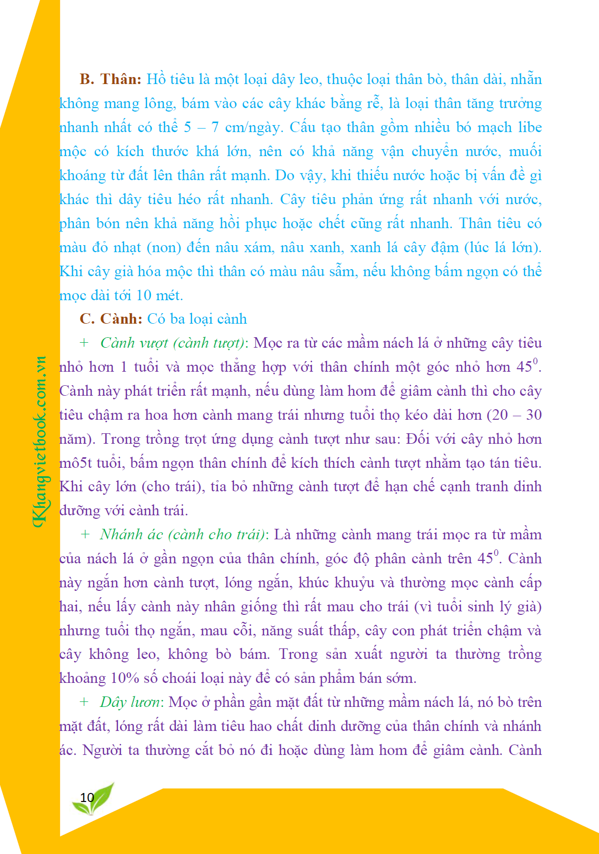 Bí Quyết Thành Công Kĩ Thuật Trồng Tiêu Hiệu Quả Từ nhiều năm nay, giới kinh doanh nông sản và gia vị khắp thế giới biết đến Việt Nam với tư cách của một nhà xuất khẩu hồ tiêu số 1 thế giới. Năm 2014, ngành hồ tiêu Việt Nam vượt ngưỡng xuất khẩu đạt kim ngạch trên 1 tỷ USD, sản lượng chiếm trên 41% tổng sản lượng các nước trồng tiêu toàn thế giới và lượng xuất khẩu đạt 58% thị phần hồ tiêu toàn cầu. Cây hồ tiêu có tên khoa học là Piper Nigrum, thuộc họ Piperaceae, có nguồn gốc từ Ấn Độ, được người Pháp trồng ở Việt Nam từ thế kỷ XVII. Môi trường sinh trưởng tự nhiên là rừng xích đạo, nóng ẩm quanh năm, cây ưa lặng gió, che bóng, thích hợp với đất pha cát, tơi xốp, sâu, dốc thoải nhiều màu, thoát nước nhanh, lượng mưa thích hợp là 2500 – 3000 mm/năm. Hồ tiêu được trồng ở nước ta từ lâu, chủ yếu ở các tỉnh miền Nam, nhiều nhất là ở Phú Quốc, Kiên Giang, Bà Rịa – Vũng Tàu, Quảng Trị và còn được trồng ra tới Nghệ An, Hà Tĩnh nhưng diện tích ít hơn. Trong những năm qua, nghề trồng hồ tiêu đã có những bước nhảy vọt, lượng tiêu sản xuất và xuất khẩu mỗi năm tăng 20 – 30%. Năm 2001 Việt Nam xuất khẩu được 55.000 tấn Tiêu, năm 2002 đạt gần 70.000 tấn, đưa Việt Nam trở thành nước đứng thứ 2 về diện tích trồng (sau Ấn Độ) và là nước đứng đầu thế giới về sản xuất và xuất khẩu tiêu đen với các chủng loại nổi tiếng trong và ngoài nước như: Tiêu Phú Quốc, Tiêu Cù và Tiêu Hồ Xá (Quảng Trị), Tiêu Tiên Sơn (Gia Lai), Tiêu Đất Đỏ (Bà Rịa), Tiêu Di Linh (Lâm Đồng)… Các loại tiêu này được xuất khẩu sang nhiều nước và được đánh giá cao vì có độ thơm và vị cay nồng đặc trưng. Hiện nay, Việt Nam có 6 tỉnh trọng điểm sản xuất hồ tiêu gồm Bình Phước 12.148 ha, Đắk Nông 11.154 ha, Đắk Lắk 12.082 ha, Bà Rịa – Vũng Tàu 9.074, Đồng Nai 9.010 ha, Gia Lai 11.245 ha. Trong đó, khu vực Tây Nguyên và miền Đông Nam Bộ đứng đầu về diện tích, năng suất và sản lượng hồ tiêu. Ngoài ra, nước ta còn có các vùng trồng tiêu khác như Phú Quốc (Kiên Giang) đã có thương hiệu lâu nay và vùng trồng hồ tiêu ở Quảng Trị… Việt Nam có tốc độ xuất khẩu hồ tiêu tăng nhanh, đạt tốc độ tăng 15– 20% bình quân mỗi năm. Năm 2001, lần đầu tiên Việt Nam trở thành nước xuất khẩu hồ tiêu lớn nhất thế giới với tổng lượng xuất khẩu 50.506 tấn, đạt kim ngạch xuất khẩu khoảng 90 triệu USD. Sáu năm liên tiếp hạt tiêu của Việt Nam giữ vững vị trí số 1 về sản lượng và số lượng xuất khẩu trên thế giới. Năm 2014, ngành sản xuất hồ tiêu thế giới giảm sút do một số nước bị mất mùa đẩy giá tiêu lên cao, riêng Việt Nam vẫn ổn định, đạt diện tích hơn 73.500 ha, sản lượng gần 140.000 tấn, xuất khẩu 156.396 tấn (gồm cả lượng nhập về để tái xuất) và lần đầu tiên kim ngạch xuất khẩu đạt 1.2 tỷ USD. Hiện nay, hồ tiêu Việt Nam được xuất khẩu đến 97 quốc gia và vùng lãnh thổ thuộc châu Á, châu Âu, châu Mỹ, châu Phi. Đặc biệt, sản phẩm hồ tiêu chất lượng cao của Việt Nam xuất khẩu vào Mỹ và các nước EU ngày càng tăng. Các nước châu Âu chiếm thị phần 40%, đã chấp nhận công nghệ sản xuất hồ tiêu Việt Nam và các mặt hàng gia vị chế biến từ hồ tiêu của nước ta. Cây hồ tiêu hiện đang là cây trồng mang lại hiệu quả kinh tế cao, giúp cải tạo và nâng cao đời sống cho người nông dân trong nước chính vì vậy mà diện tích canh tác loại cây này cũng không ngừng tăng nhanh. Từ nhu cầu, lợi ích, hiệu quả và những tính năng kinh tế vượt trội do cây hồ tiêu mang lại, công ty sách Khang Việt xin trân trọng giới thiệu đến bạn đọc cuốn sách “Kỹ Thuật Trồng Tiêu Hiệu Quả”, hy vọng cuốn sách sẽ đem đến cho bạn đọc những thông tin bổ ích, hữu dụng và cần thiết trong cuộc sống và công việc kinh doanh của bạn.