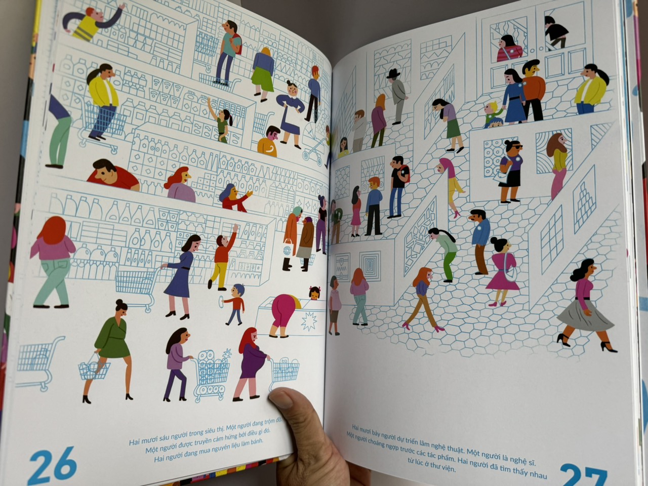 Trong tay bạn lúc này là cuốn sách tranh đặc biệt với câu chuyện về 7.8 tỉ người trên hành tinh. Bạn có thể dùng sách để đếm số người, luyện mắt tinh và nếu đủ tinh ý, bạn sẽ khám phá ra vô số bí mật ẩn giấu trong từng bức tranh, thậm chí tìm thấy câu chuyện của chính mình! Qua đó, sách truyền tải thông điệp tôn vinh sự khác biệt của mỗi người.