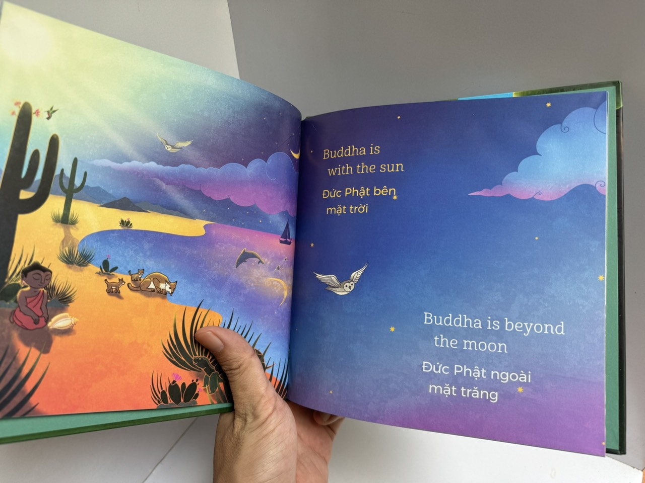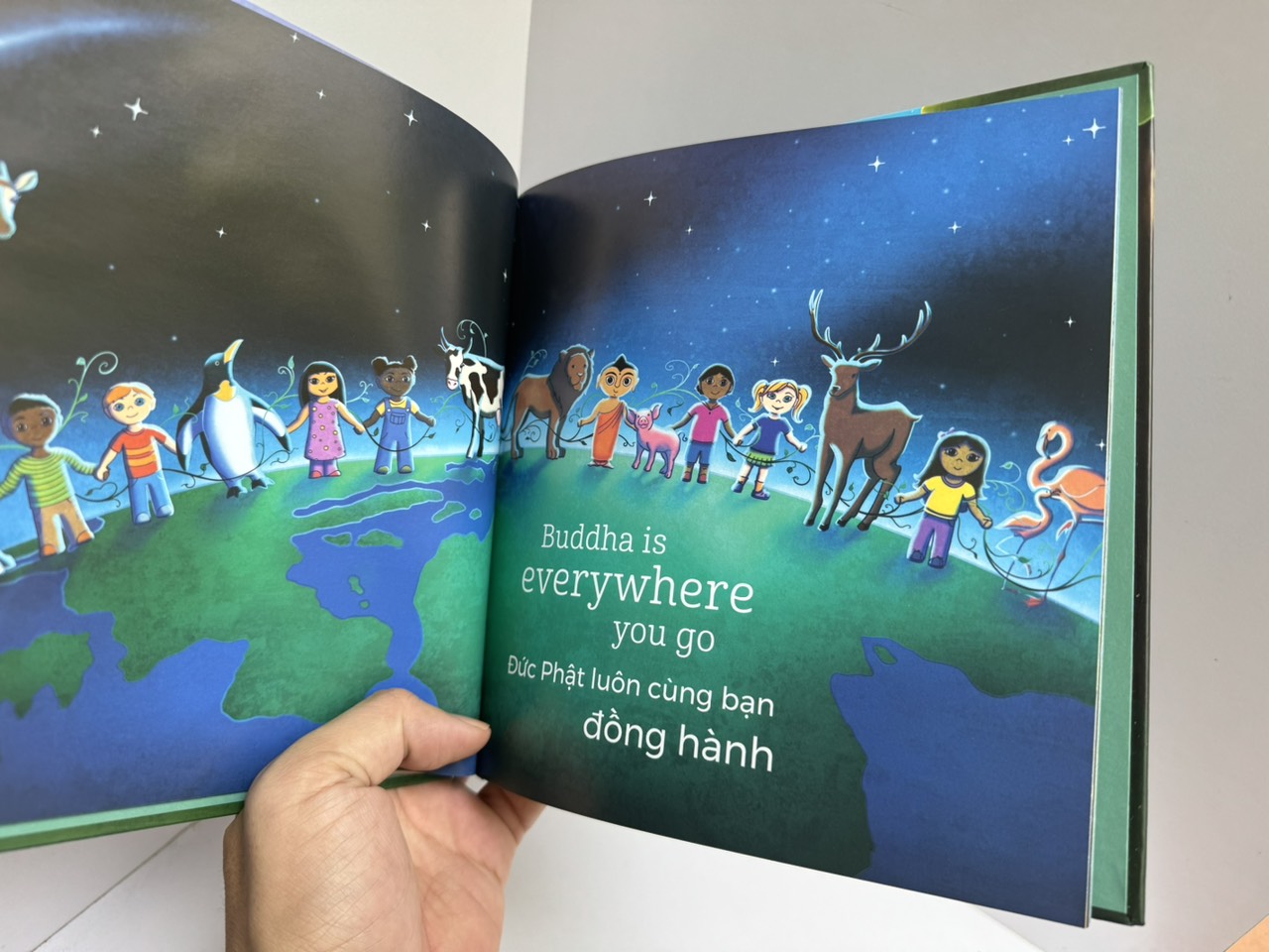 Cuốn sách “Đức Phật ở đâu?” đưa các con theo chân Đức Phật tham gia một hành trình tráng lệ. Từ đỉnh núi cao đến đại dương sâu thẳm. Vượt qua vành đai sao Thổ và những cánh bướm xinh. Câu chuyện ngọt ngào này sẽ cho các con thấy: dù đi đâu, các con đều có thể tìm thấy Đức Phật xung quanh mình.