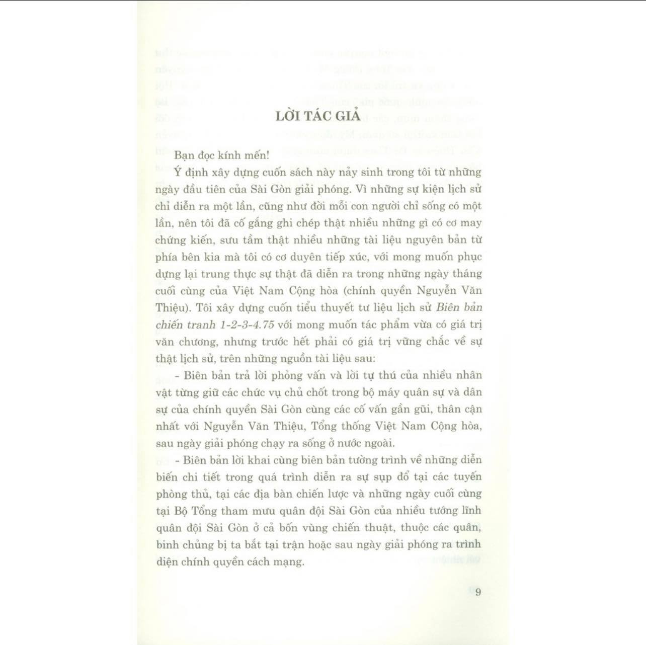 Tác giả Trần Mai Hạnh từng là phóng viên chiến trường của Thông tấn xã Việt Nam ở chiến trường miền Nam, đầu năm 1975, ông được cử tham gia chiến dịch Hồ Chí Minh lịch sử với nhiệm vụ là phóng viên đặc biệt. Những tài liệu nguyên bản thu được, những trang ghi chép tại chỗ trong quá trình tham gia chiến dịch cùng những tài liệu quý giá thu thập được đã giúp tác giả viết nên “Biên bản chiến tranh 1-2-3-4.75”