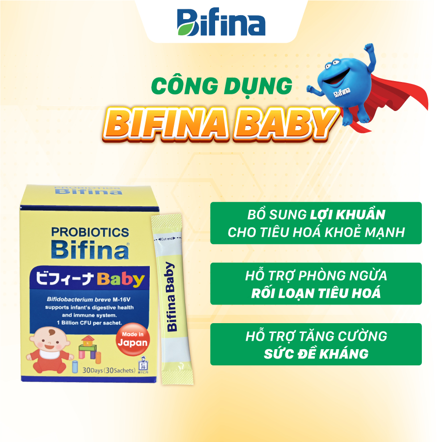 Bifina Baby Nhật Bản - Hộp 30 gói - Hỗ trợ bổ sung lợi khuẩn, tăng đề kháng cho trẻ sinh non, sinh mổ, dùng sữa công thức Đối tượng sử dụng: Dành cho trẻ