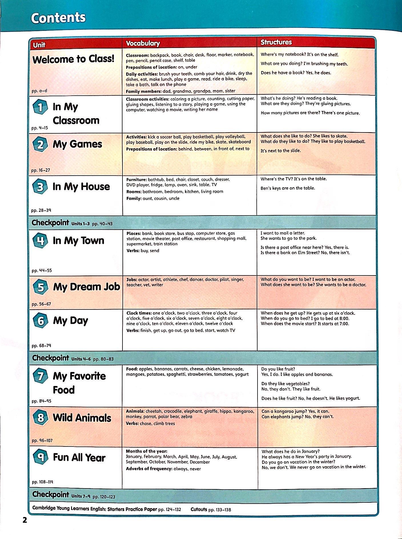 Provides more practice to consolidate the Student Book Picture Dictionary (Levels 1-4) helps with vocabulary practice Grammar Reference Guide (Levels 5-6) offers more practice, and allows students and teachers to check grammar rules