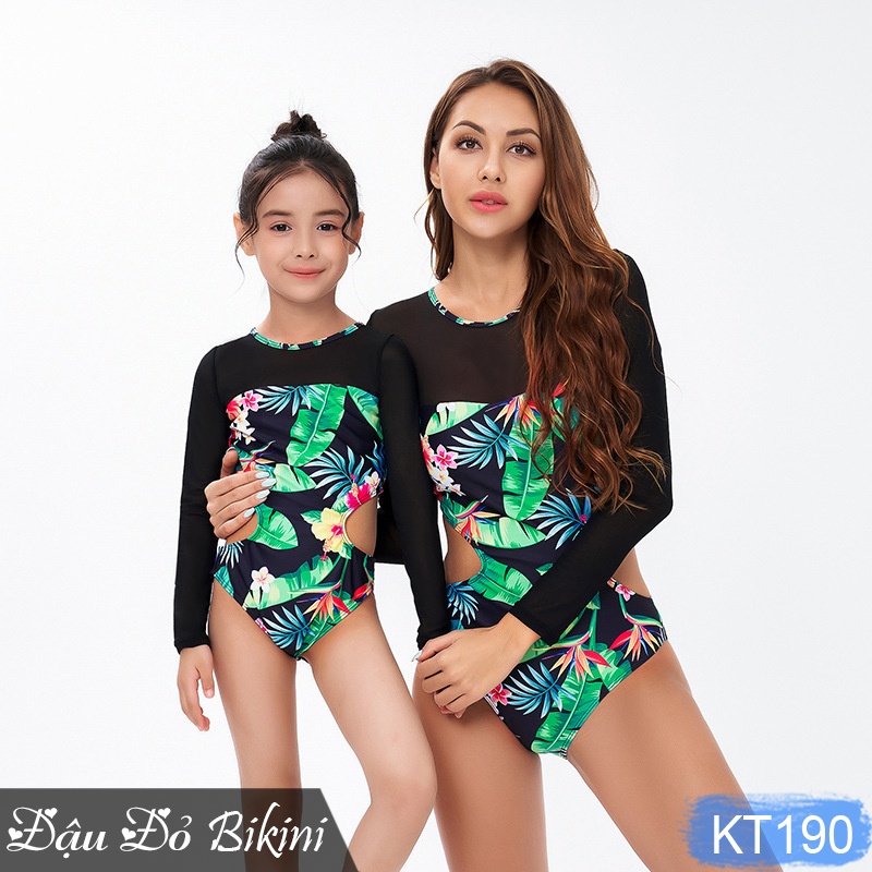✨Bikini đồ bơi đôi cho mẹ và bé gái, áo tắm liền thân cặp mẹ con, kiểu Âu Mỹ gợi cảm, hoạ tiết lá hoa Hawaii tươi trẻ, chất thun bơi 2 lớp dày dặn, phom đẹp | KT190