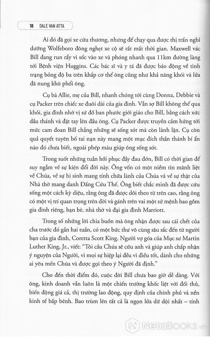 Với cuốn tiểu sử Bill Marriott này, độc giả sẽ cùng gia đình Marriott trải qua mọi cung bậc cảm xúc cùng những câu chuyện lần đầu được tiết lộ về cuộc sống cũng như con đường đưa BilL Marriott trở thành một trong những tượng đài kinh doanh ngành khách sạn trên thế giới. Ông không chỉ là một nhà kinh doanh có tầm nhìn chiến lược mà còn là một con người giàu lòng nhân ái, giàu nghị lực và vô cùng quyết đoán. Chính những đức tính đáng trân quý này đã giúp ông đưa cái tên Marriott vươn xa toàn cầu.