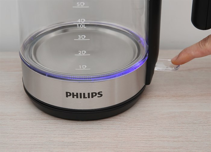 Mua tại TiktokBình đun siêu tốc Philips HD9339 - 2000W - 1.7 Lít Chất liệu thủy tinh trong suốt bền chắc, kèm đèn cảm ứng Dung tích 1,7 L Nắp có thể tháo rời Đèn báo màu xanh dương