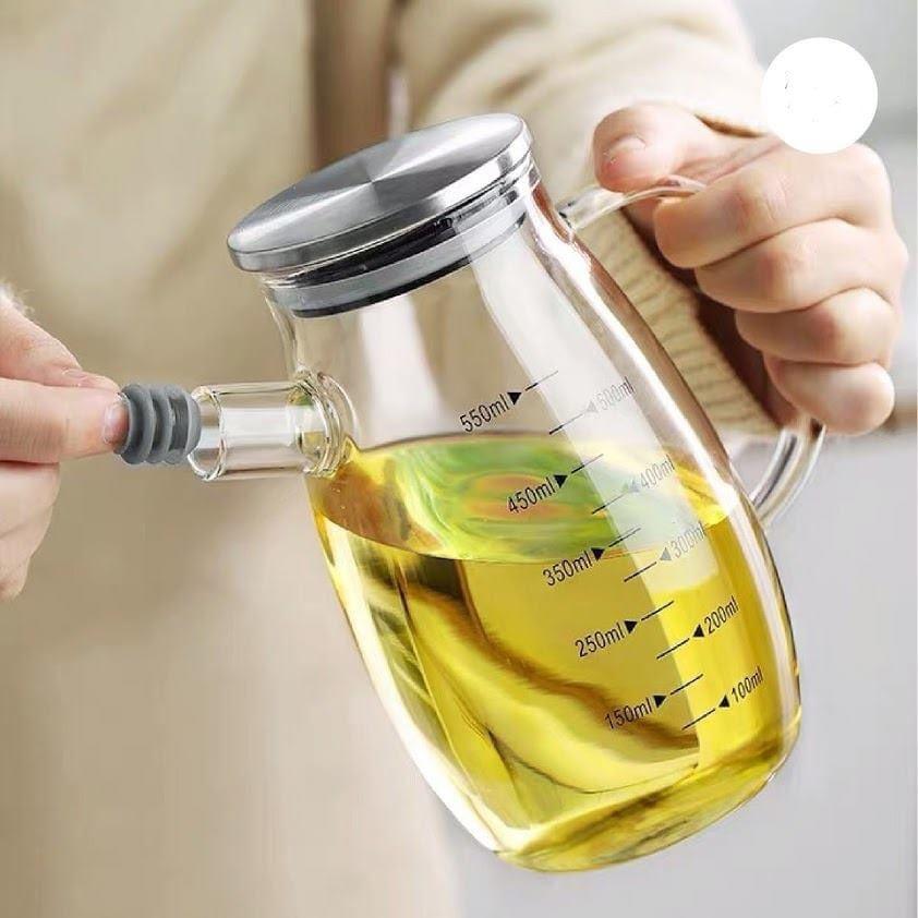 Bình Thủy Tinh Rót Dầu Ăn/Nước Mắm Có Vòi & Phễu Tích Hợp – Dung Tích 500ml – Chai Đựng Gia Vị Thông Minh, Chịu Nhiệt, Có Vạch Chia Thông Tin Chung - Dung tích: