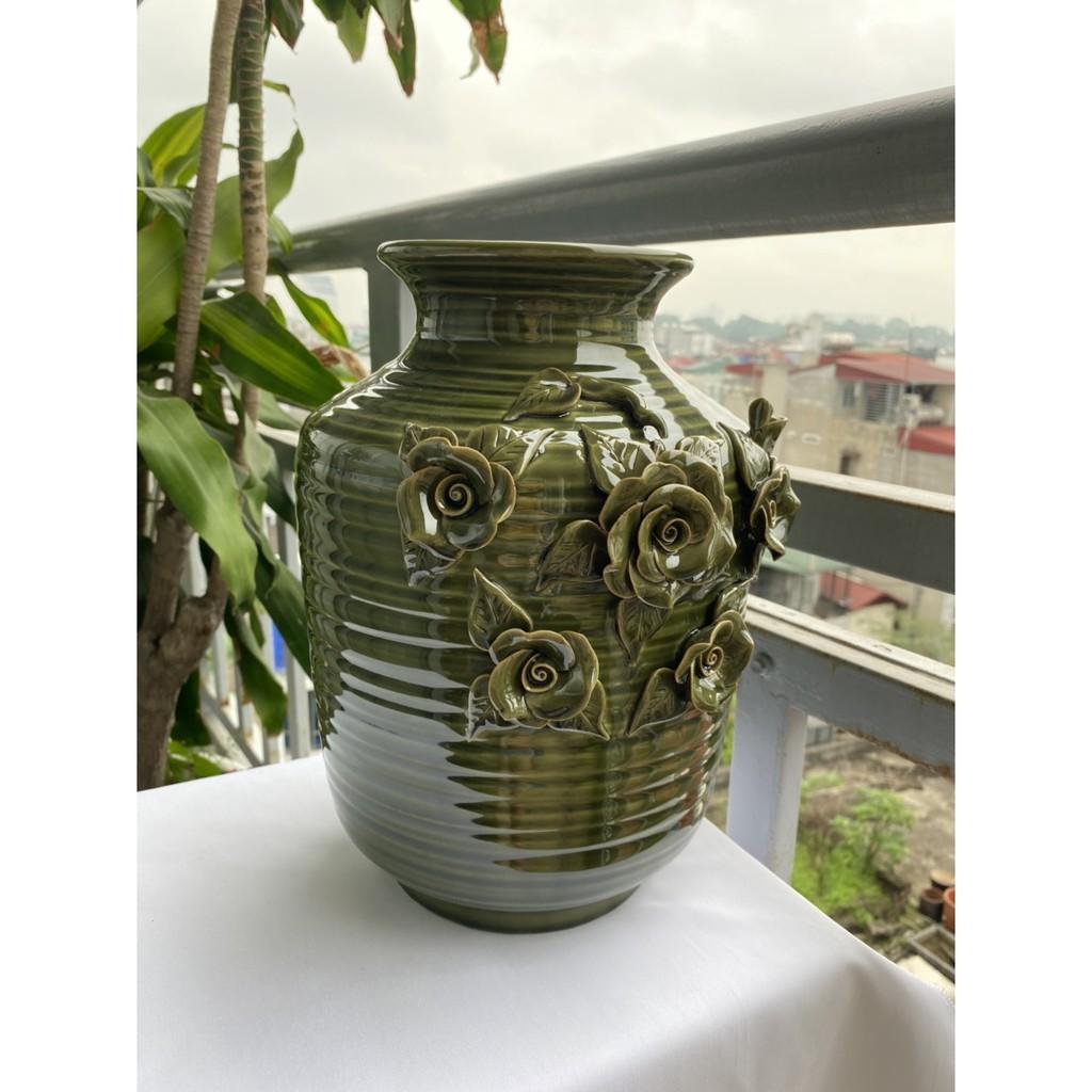 Bình hoa cao cấp Bát Tràng, hàng chuẩn loại 1, dáng chum họa tiết đắp nổi được thực hiện thủ công 100% bởi bàn tay lành nghề của các nghệ nhân làng nghề. Sản phẩm