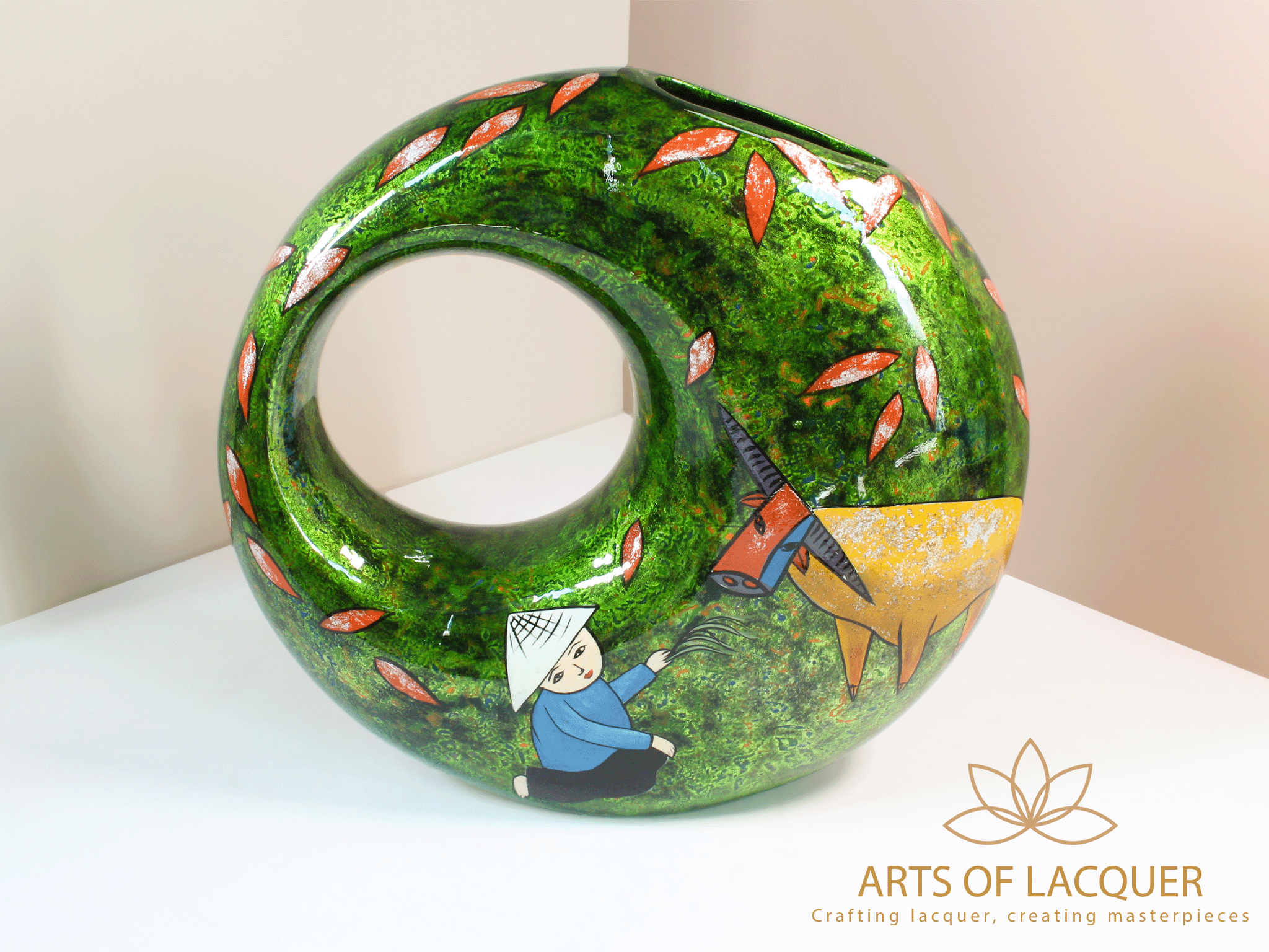 Bình Hoa Sơn Mài "Thuận Hoà Làng Quê" là sự lựa chọn hoàn hảo cho những ai yêu thích nghệ thuật thủ công và phong cảnh làng quê Việt Nam. Hãy thêm vào bộ sưu tập của bạn một tác phẩm nghệ thuật đầy ý nghĩa từ Arts of Lacquer.