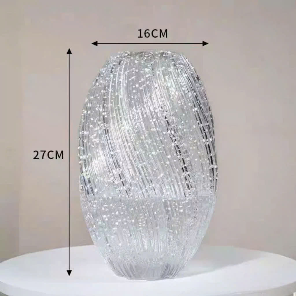 Bình Hoa Xoắn Thủy Tinh Phát Sáng – Decor Trong Suốt Lấp Lánh, Tỏa Sáng Trong Bóng Tối – Trang Trí Nhà Cửa Phong Cách Hiện Đại (16x27cm)