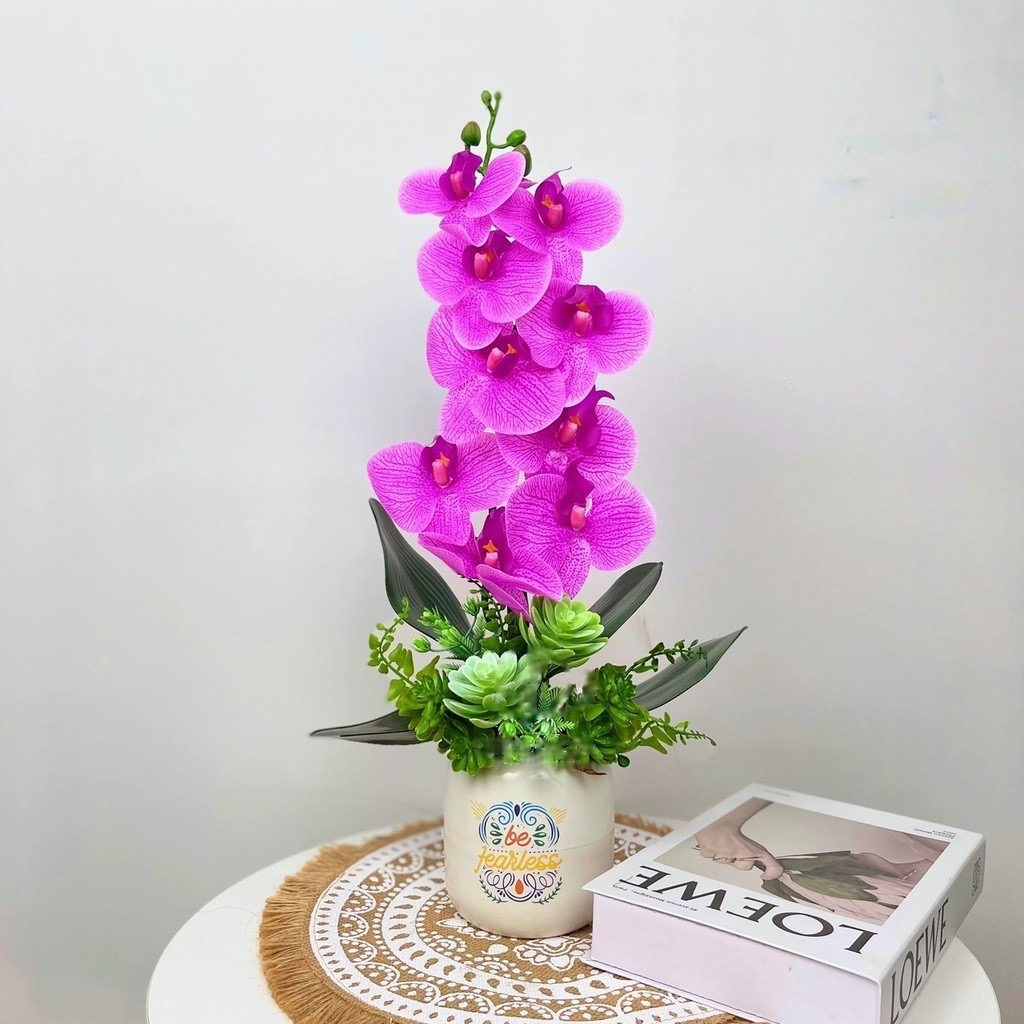 Bình lan hồ điệp giả - kèm chậu đầy đủ phụ kiện - Cây giả, hoa lụa Decor trang trí nhà cửa