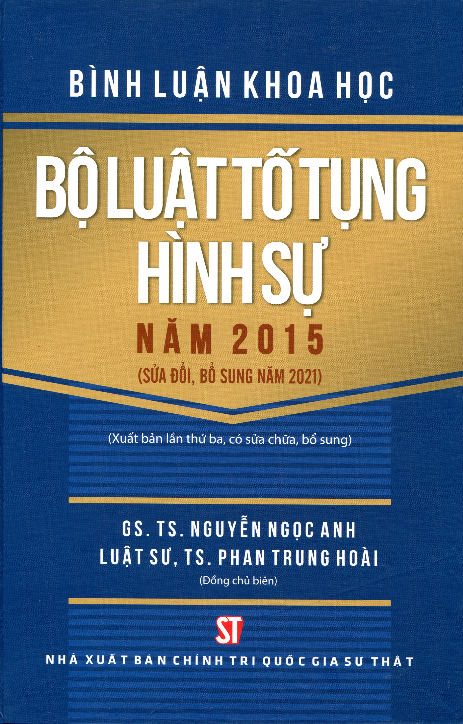 BÌNH LUẬN KHOA HỌC BỘ LUẬT TỐ TỤNG HÌNH SỰ 2015 Tác giả: PGS.TS Trần Văn Luyện- PGD.TS Phùng Thế Vắc- LS.Ths. Phạm Thanh Bình, Ls Pạm Thị Thu, Ls Ths Nguyễn Cao Hùng.Nhà xuất