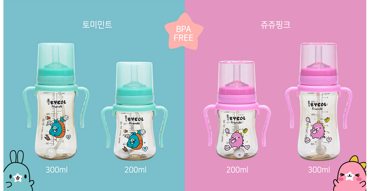 Bình ống hút tập uống cho bé IBYEOL Friends PESU (chính hãng Hàn Quốc) 200ml/300ml Dòng bình ống hút từ Hàn Quốc với thiết kế đơn giản, tinh tế, dáng cổ rộng đem đến sự