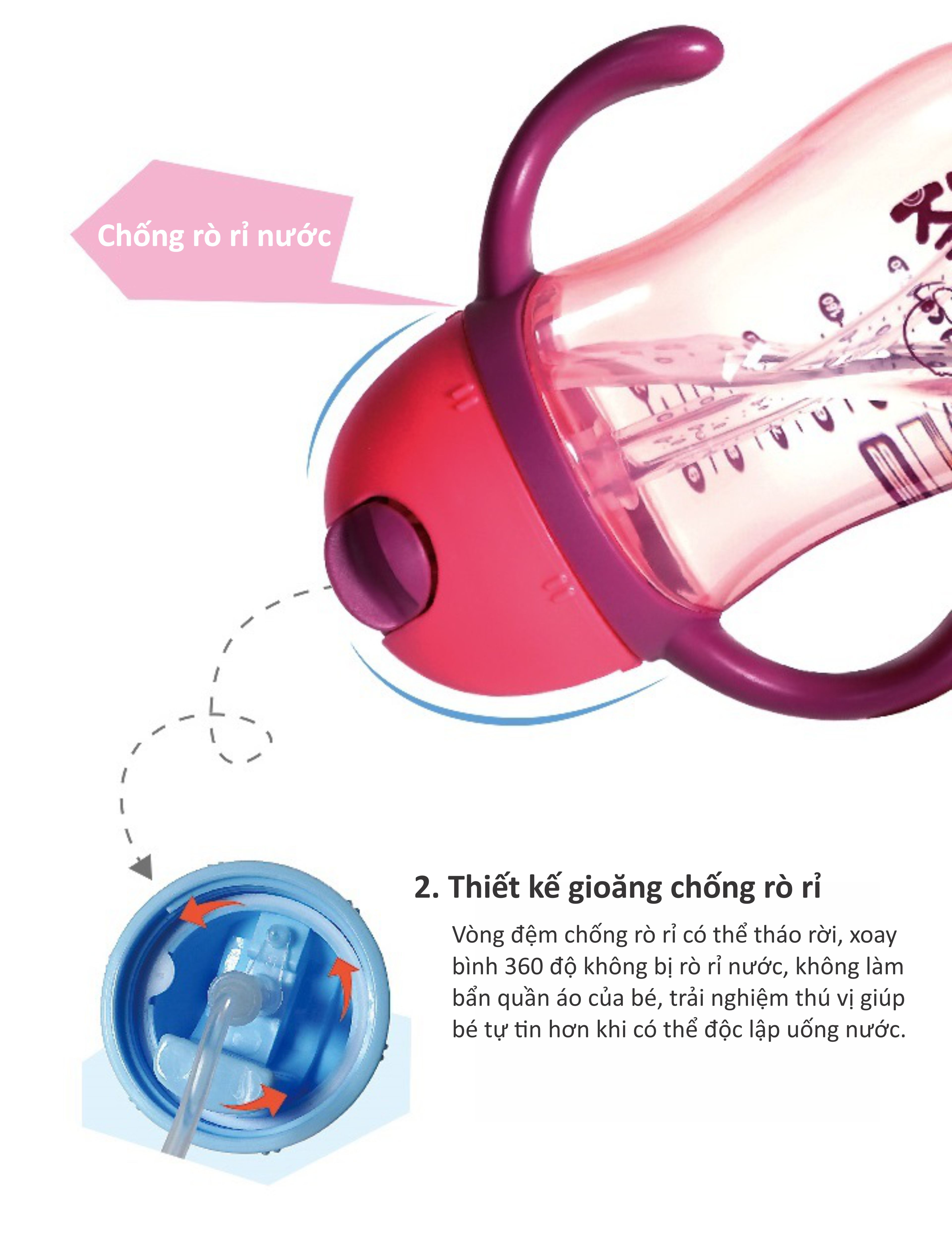 Đặc điểm nổi bật: - Khi trẻ bắt đầu tập uống, mẹ thường chọn các loại cốc có ống hút để bé uống nước an toàn & dễ dàng hơn, nhưng khi vệ sinh ống