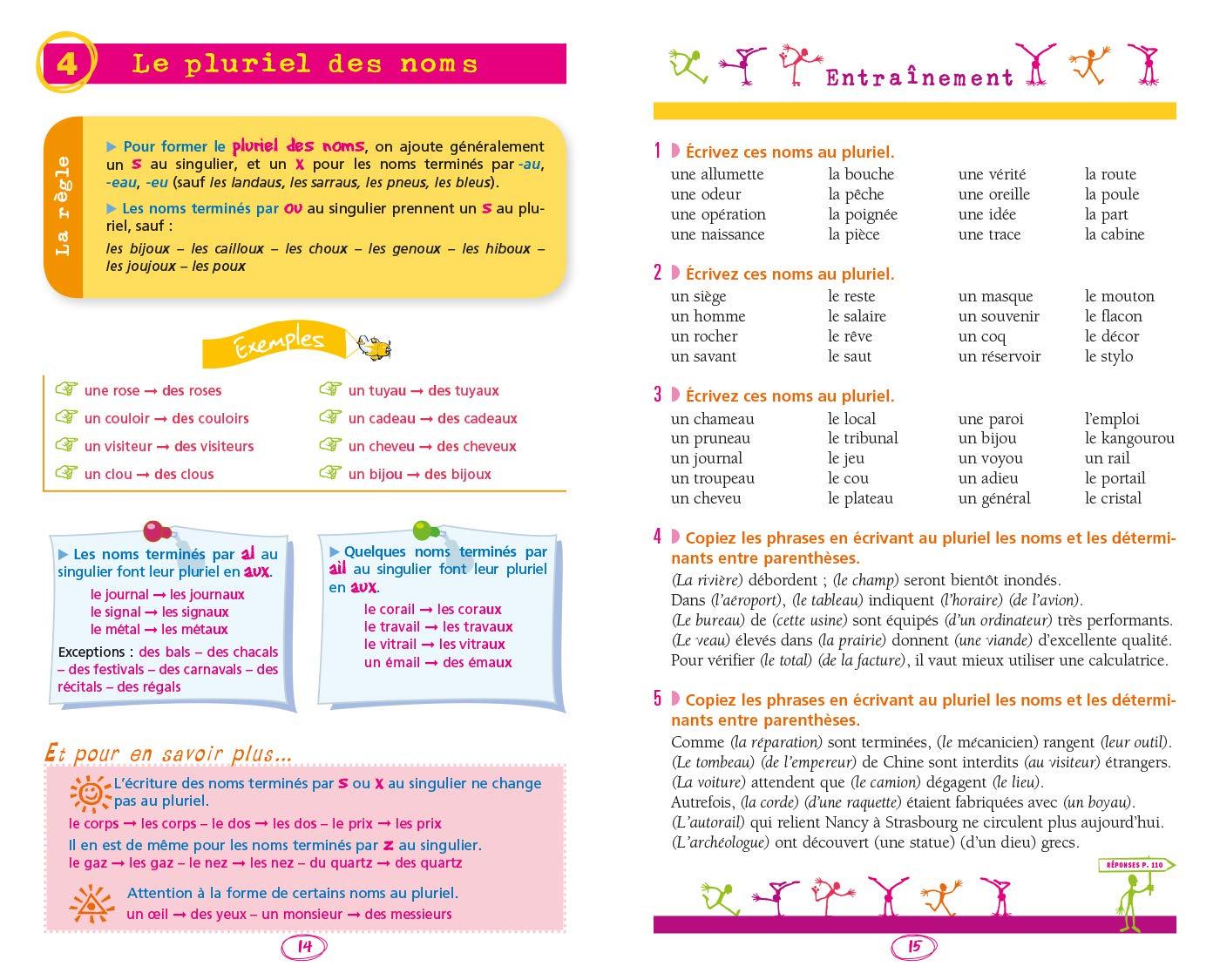 Chacune des 50 règles fondamentales de l'orthographe fait l'objet d'une double page proposant :