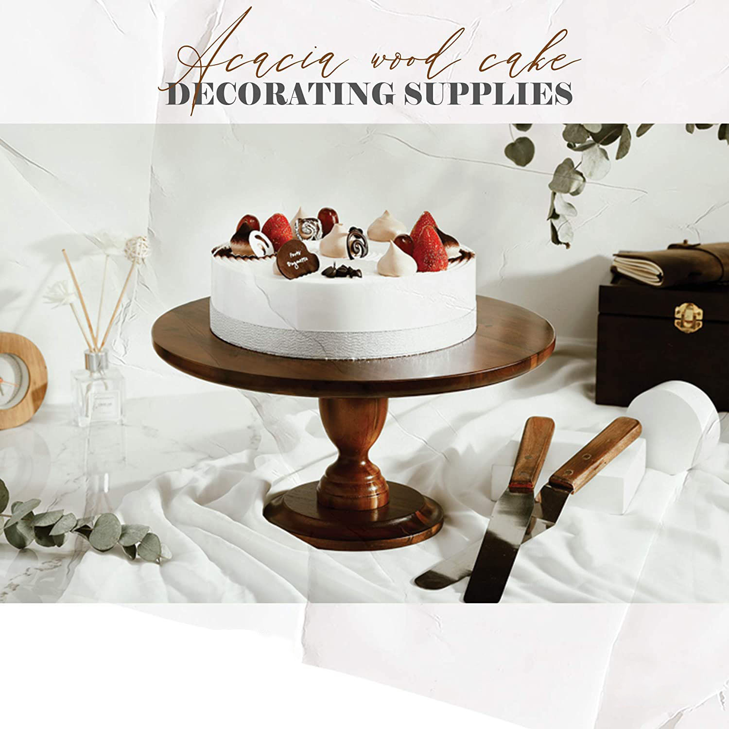 ✨Bộ 2 dao chà láng thẳng và gấp khúc cán gỗ, dùng trang trí bánh kem