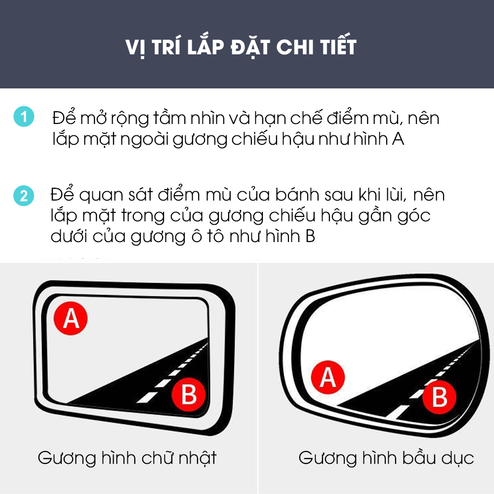 Bộ 2 gương cầu lồi ô tô Tâm Luân còn được gọi là gương xóa điểm mù hoặc gương lồi gắn xe hơi được thiết kế là dạng gương con - dày, gắn phụ trên