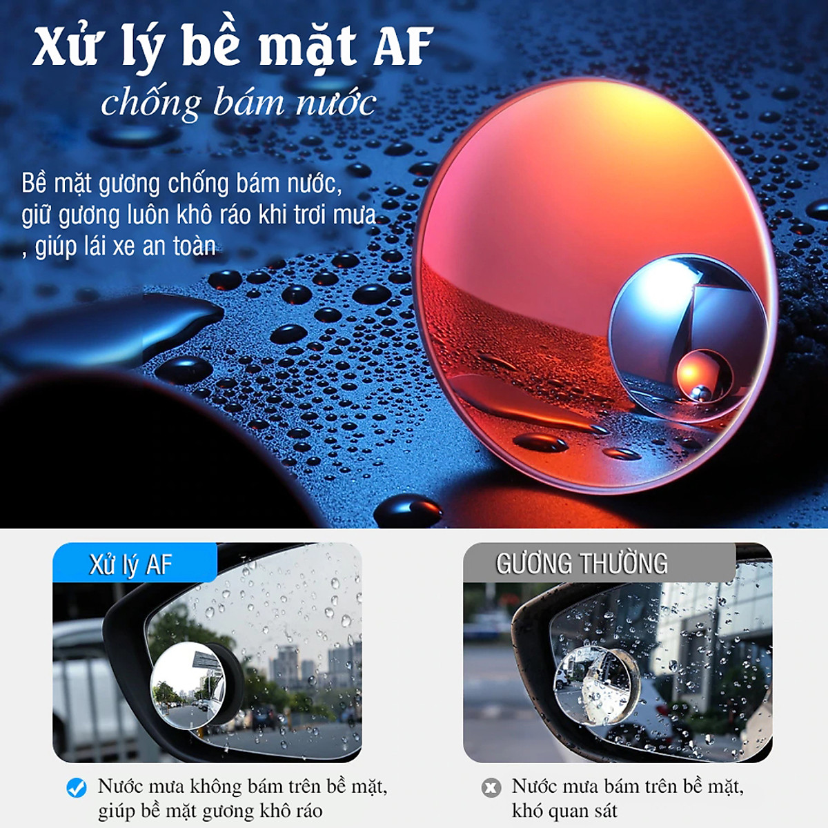- Mở rộng góc nhìn , chống điểm mù giúp dễ dàng quan sát hơn, an toàn hơn khi điều khiển xe . - Trang bị lớp phủ cao cấp , chống bám nước mưa