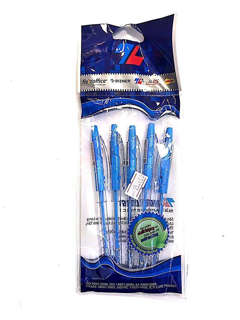 Vỉ 5 Bút Bi TL-097 - Màu Xanh Bút có thiết kế đơn giản, toàn bộ thân bút làm từ nhựa trong, nút bấm bằng nhựa cùng màu với ruột bút. Viết rất trơn, êm,